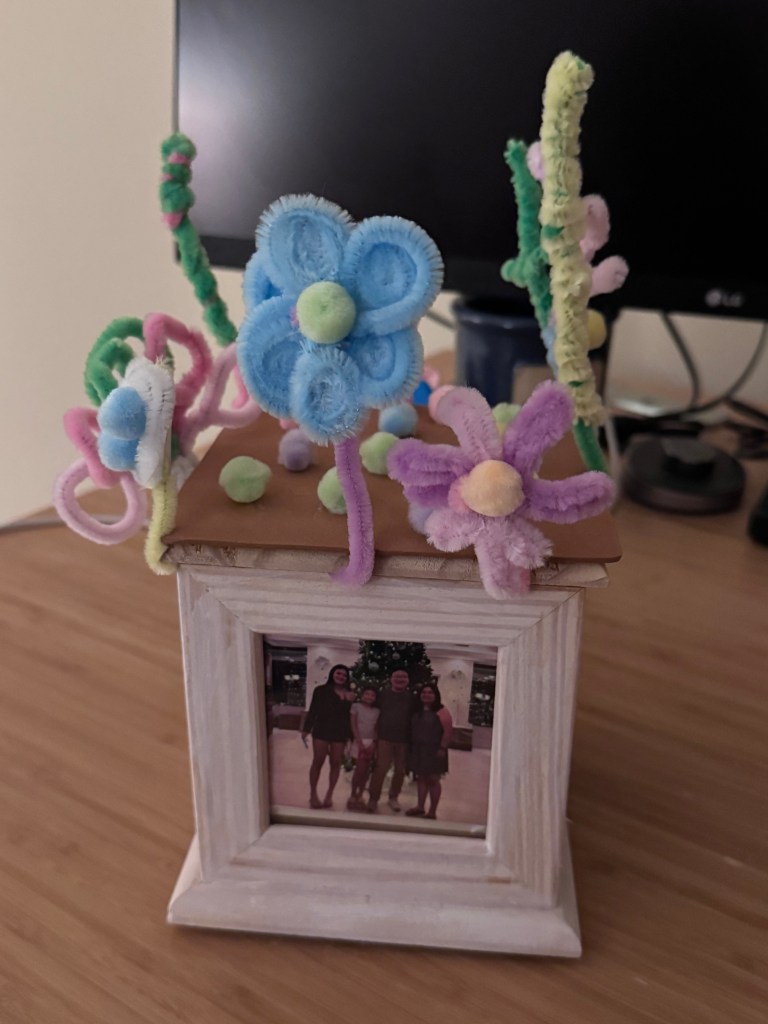 Coco loves doing crafts and drawing. Here are two pieces of her recent creations.